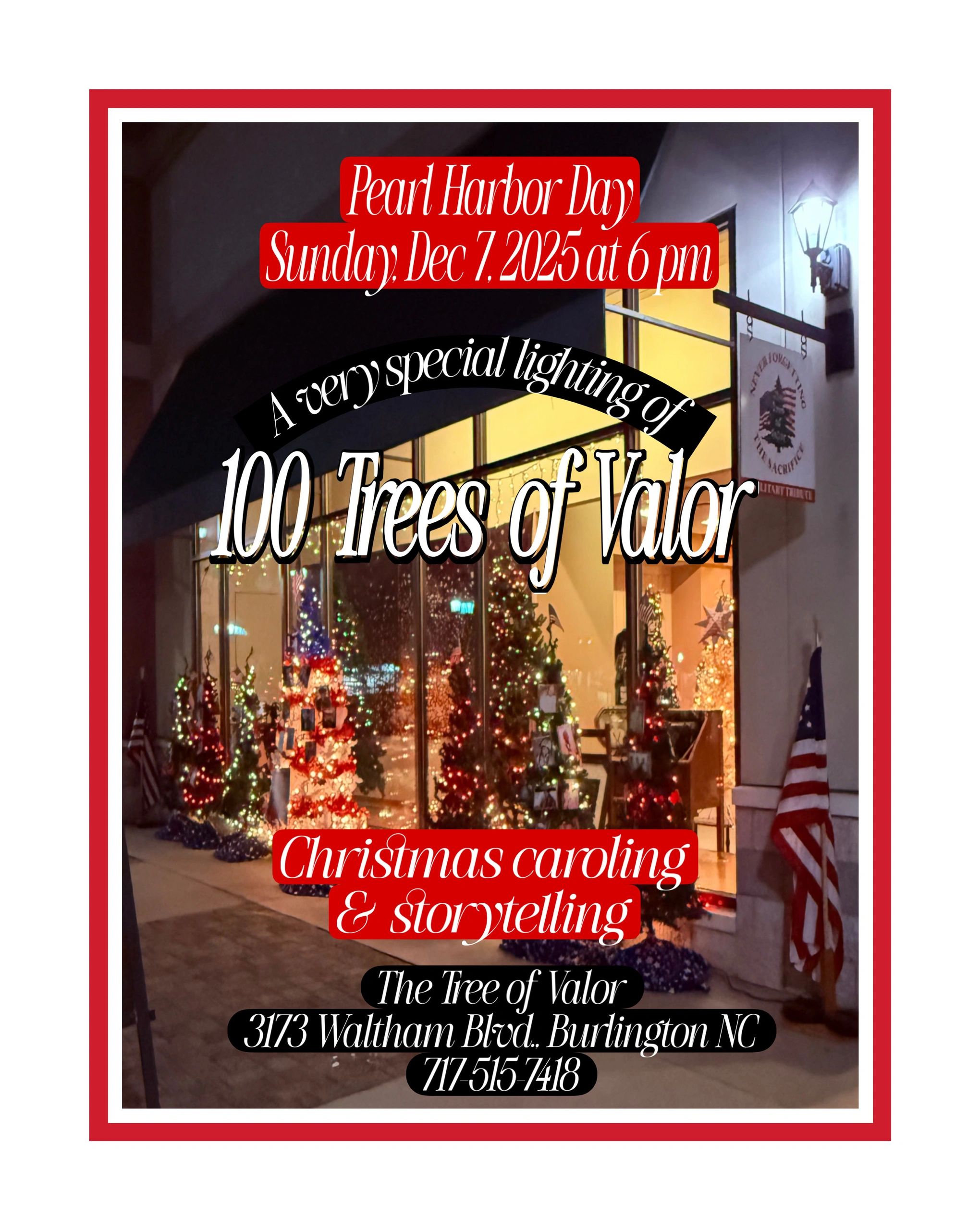 Your new holiday tradition!! Honoring our nation’s protectors! Tree lighting, caroling, storytelling, & treats.